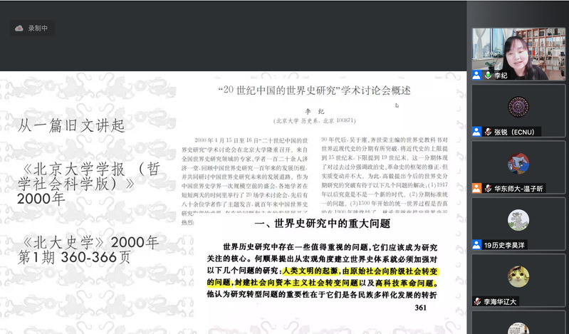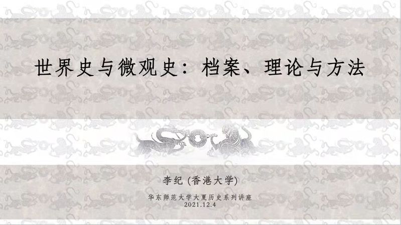 2021年12月4日晚上19:30,香港大学现代语言文化学院及香港人文社会研究所李纪老师应大夏历史系列讲座的邀请,于线上举办了题为“世界史与微观史:档案、理论与方法”的学术讲座。本次活动由华东师范大学det365在线张锐老师主持,共吸引了来自校内外的师生四百余人。