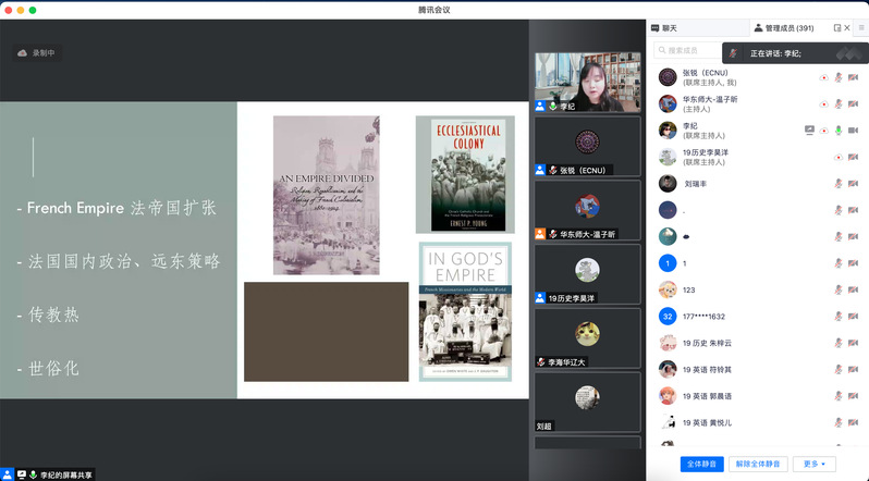 同时,李纪老师强调,在研究中西交流史时,需要从多维度角度去讨论,例如所有的西方传教士并不是凭空“空降”至中国,还需要了解所有来华传教士的群体他们母国的状况,经济文化等等,如研究巴外方来华的传教士不仅要从中国史角度去讨论,还需要考虑法国史角度及教会史角度,包括19世纪法国国内的政治,远东策略,从而使自己的研究跨越中国史研究或者世界史研究这种局限性框架。