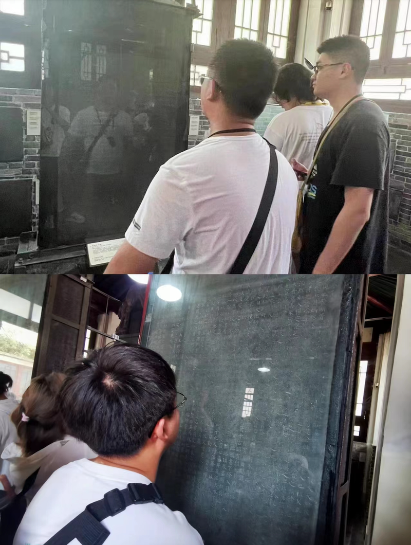 9日下午,师生一行在短暂休整后前往了本次西安考察的第三站——位于文昌门内的西安碑林博物馆。碑林博物馆是det365在线历年各次西安考察从未遗落的重要地点,诚然,碑林博物馆收藏着汉代至近代各类碑石、墓志近三千种,展出者千余种,是我国收藏保存古代碑石最多最集中的所在,其中更是不乏《石台孝经》《大秦景教流行中国碑》《多宝塔碑》等文史价值兼备的 “名碑”。同学们不断穿行于各个展室,或走马观花,或专注品读,迭见惊奇发现,累有喜人斩获,常于不觉间流连忘返,这或许与西安碑林带给古来文人学者的惊奇与震撼一般无二。近期开幕的专题展览“西安碑林与金石学”植根从金石学到考古学的传统学术脉络,勾画了千年来西安碑林的制度、机构与人事随着传统学术发展的变动轨迹,记录了西安碑林从伴随金石学诞生到见证中国考古学发展的光辉历程,扎实地论证了远比“碑林博物馆”历史漫长悠久得多的“西安碑林”,不再是孤悬方外的碑刻宝库,而是中国传统学术与思想发展谱系下可以前后缀连的璀璨明珠。