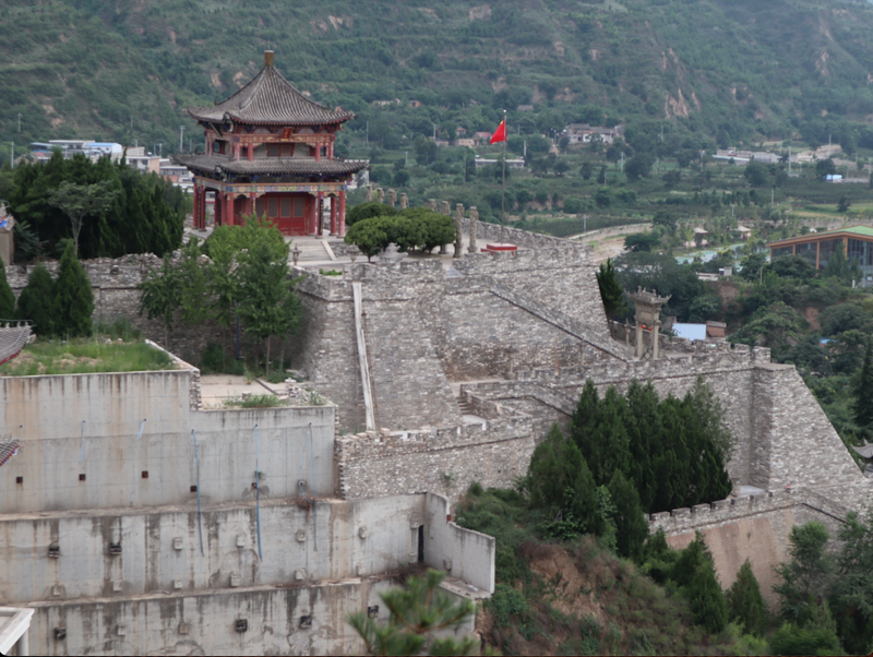 10日下午,考察队伍由西安出发,驱车百余公里前往陕西省渭南市,参观潼关黄河古渡口及其所背靠的潼关古城。此处黄河渡口,位于黄河潼关辖区东段,扼秦、晋、豫三省交界之要冲,居黄河、渭河、北洛河三河交汇之所,南依秦岭,北抵黄河,与小说想象中“一见杨过误终身”的晋陕豫交界处的风陵渡相望遥遥,加之其处在黄河拐弯之处,浪急流湍,河水苍莽,奔向东去。渡口附近存有一小段残破的黄土垣墙,为潼关古城明城北墙遗址。潼关自唐代始建起便几经迁徙,城池多变,驻防迭更,今所见潼关古城亦为当代在明清潼关故址仿古复建而来。师生一行抵达时,整个潼关古城风景区几无其他游人,仅见宏阔依旧的关城雄筑,颇有几分苍凉萧瑟之感。登城远眺,南面是山河表里、峰峦如聚的秦岭山形,北面是两河交汇、波涛如怒(北洛河已于此西边不远处汇入渭河,此处渡口实际上只能得眼见河、渭交汇)的激荡水势,向下看去却是开发未完、寂寥空荡的人造景区楼舍。千年潼关的沧桑变化,似乎在当代也还在继续。