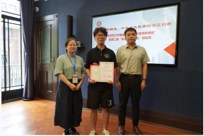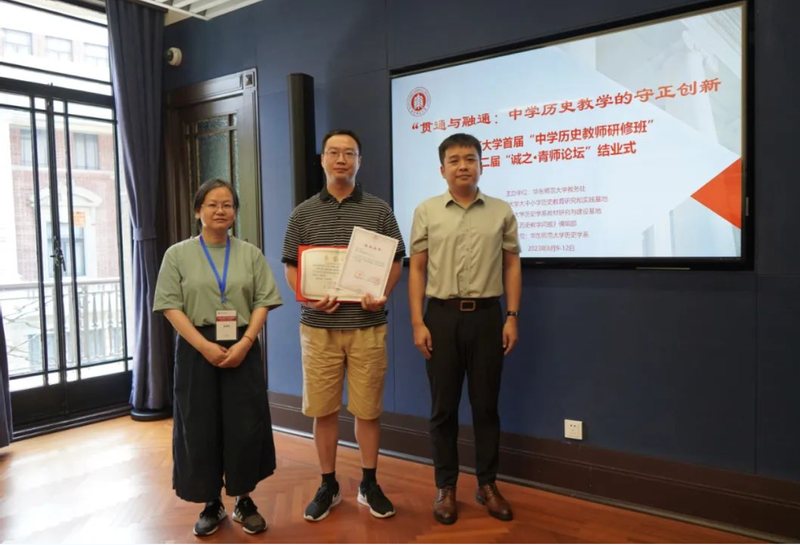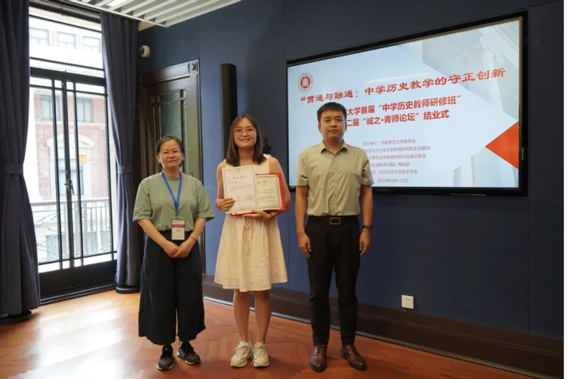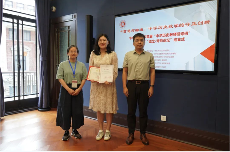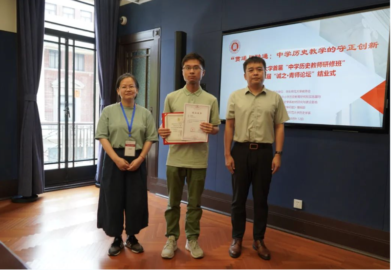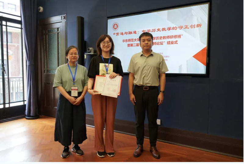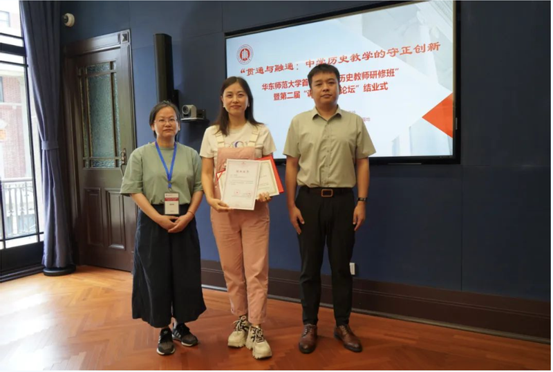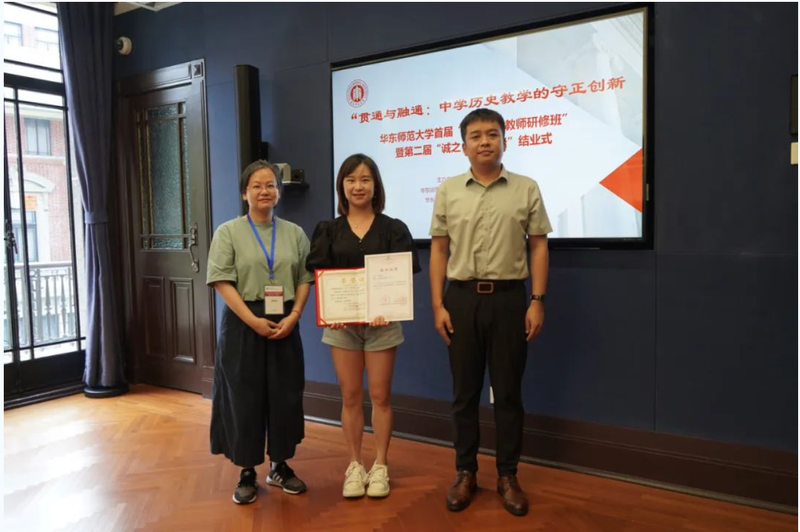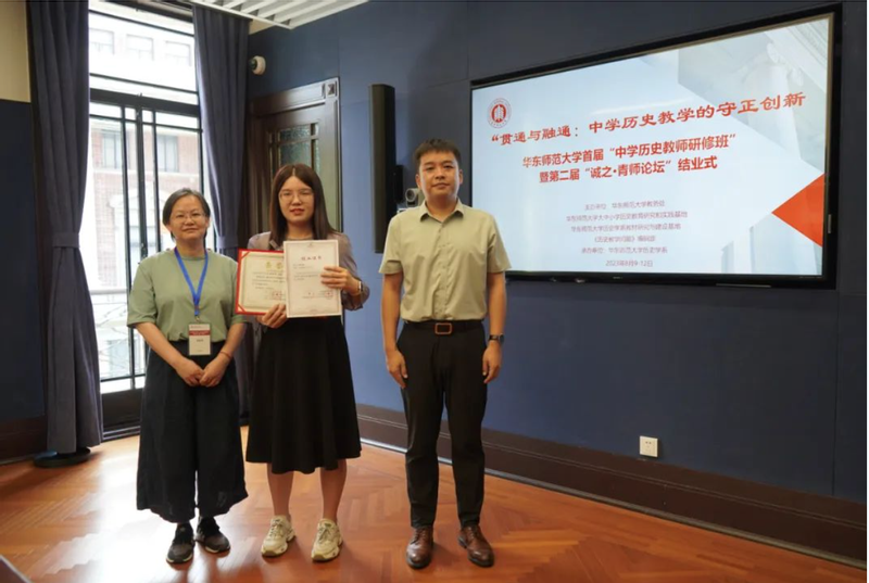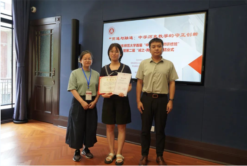 接着,“大中小学历史教育研究与实践基地”的主持人黄爱梅和李晔梦共同颁发了首期研修班结业证书和第二届“诚之·青师论坛”优秀作品荣誉证书。