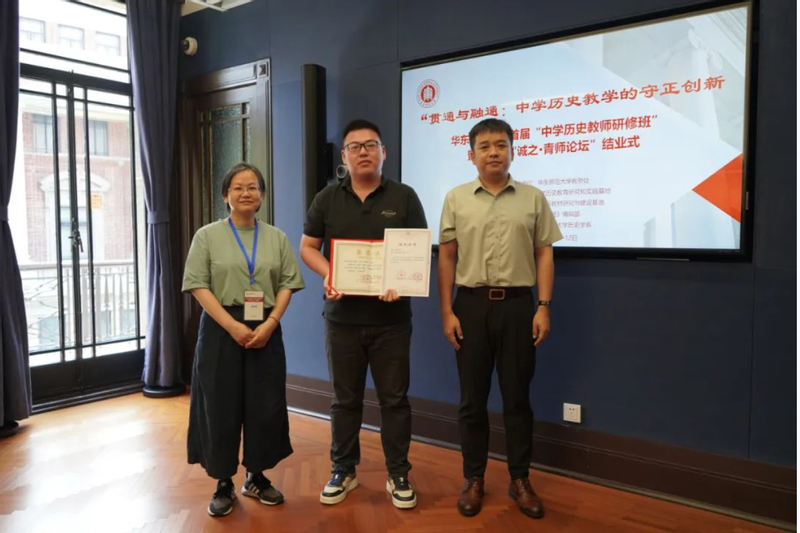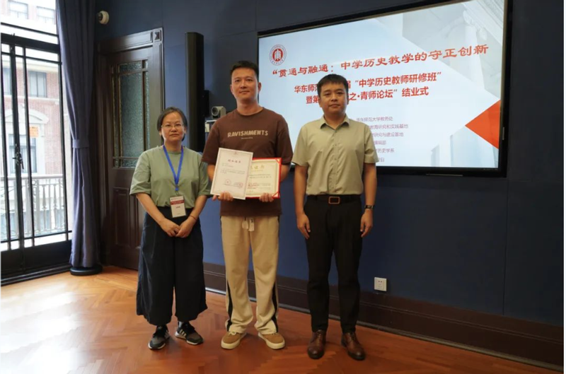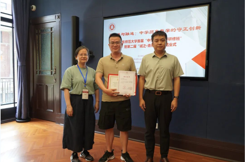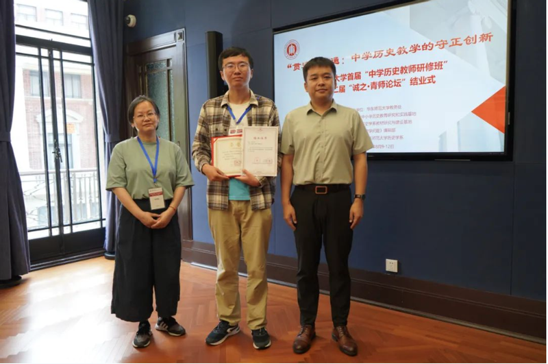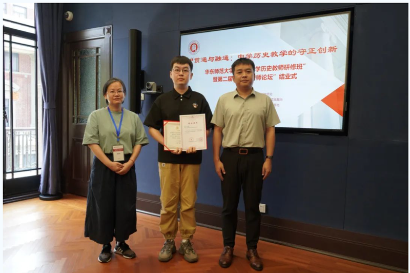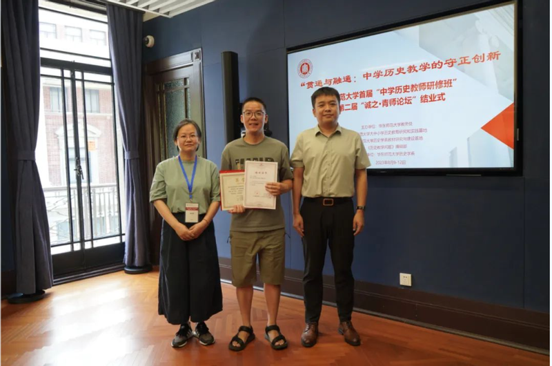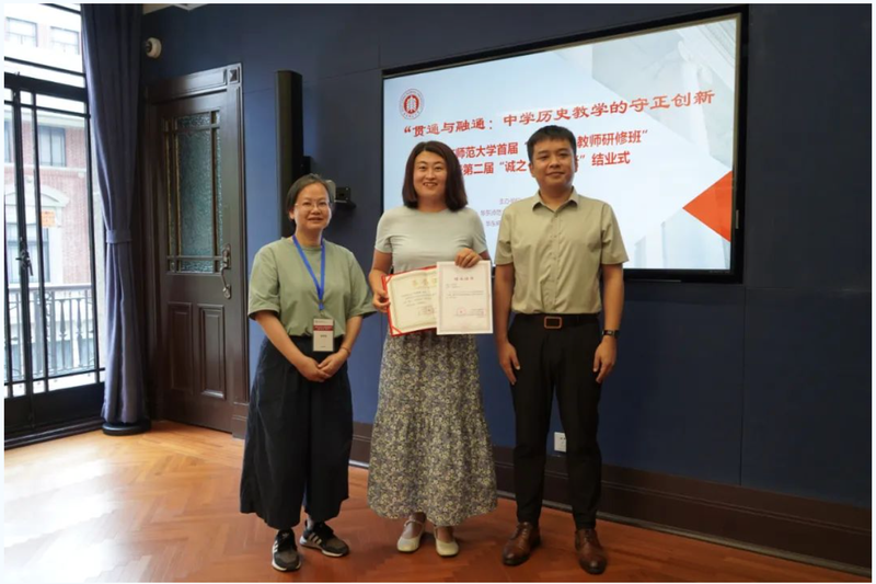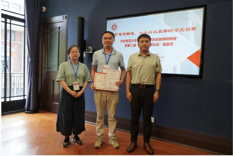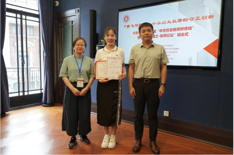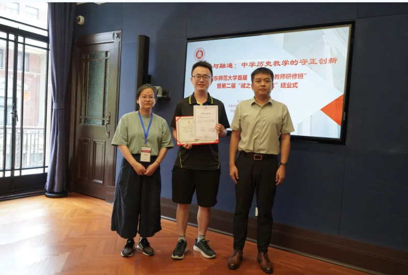 接着,“大中小学历史教育研究与实践基地”的主持人黄爱梅和李晔梦共同颁发了首期研修班结业证书和第二届“诚之·青师论坛”优秀作品荣誉证书。
