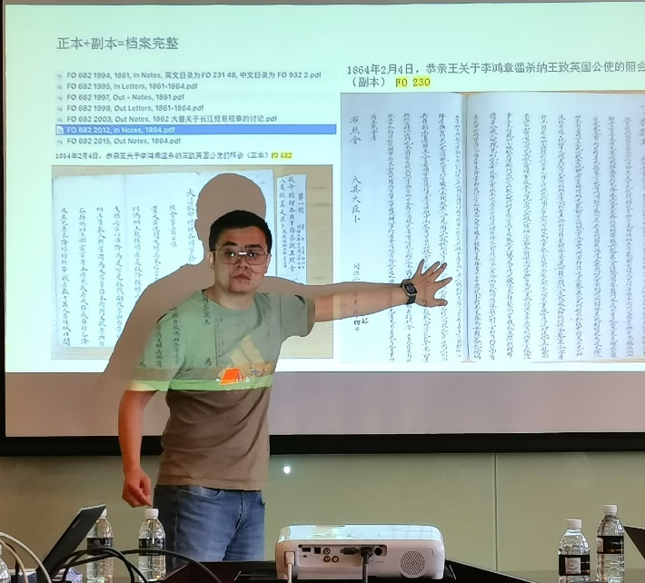 丁怡骏(上海师范大学人文学院博士后)报告的题目是《法国早期在华外交体系与文书流转》。其研究关注法国远东外交中心的转移与在华外交体系的形成,以及二者背后的动因。从1820年到1853年,法国在远东的外交中心共有过四次转移。由此带来的问题是,不同时期的档案文书要在不同的案卷中寻找,其编码情况也有所不同。1821年,法国在顺化设领事馆。但明命帝阮福晈继位后拒绝缔结通商条约。外交的失利,加之1824年《英荷条约》确立了英国在新加坡的据点,迫使法国加强对英国远东贸易与军事行动的监视,1928年改于广州和马尼拉设立领事馆,且领事常驻广州,在法国远东情报搜集活动中扮演重要作用;第二次转移发生在30年代末,由于领事归国空缺,虎门销烟运动对广州贸易的打击,以及拉萼尼使团提出法国需要在南中国海拥有据点的要求,马尼拉的地位日益重要;此后,随着中英《南京条约》的签订,进行了第三次转移,法国在华外交体系也基本完备,一等领事改驻澳门,广州则由见习领事代管;而1848年驻华公使馆设立后,第四次转移发生矛盾,上海、澳门与广州三地进入对外交活动中心的争夺。其焦点是如何在清廷与法国外交部之间建立有效的交涉渠道,以及能让公使馆、领事馆有效贯彻外交部指令的网络,以及在清廷与法国外交部之间建立有效交涉渠道。直至第二次鸦片战争后,“公使进京”一条纳入修约之中,法国在华外交体系的中心才最终得以敲定。