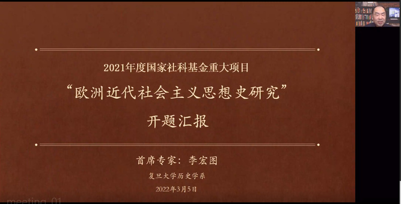 2022年3月5日,由华东师范大学、复旦大学主办的2021年度国家社会科学基金重大项目开题会在线上进行。复旦大学历史学系李宏图教授、华东师范大学历史学系孟钟捷教授和梁志教授分别进行了国家社会科学基金重大项目开题,东北师范大学副校长韩东育教授、郑州大学副校长张倩红教授、浙江大学人文学院沈坚教授、天津师范大学欧洲文明研究院院长侯建新教授、中国历史研究院历史研究杂志社焦兵社长等专家学者进行点评。