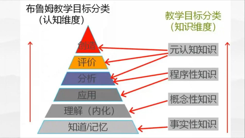 顾老师与大家分享了布鲁姆教学目标分类学理论。该理论从认知维度把教学目标分为了记忆、理解、应用、分析、评价、创造六个层次。而从知识维度出发,又可分为元认知知识、程序性知识、概念性知识以及事实性知识四个层次。顾老师指出,在设计作业时,我们可以用不同层次的目标来匹配不同类型的作业,将知识维度的四个层次作为划分作业类型的标准。