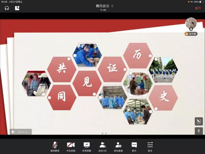在“我眼中的疫情与世界”主题分享中,大家结合自己近两个月的隔离生活,尝试书写自己身边的抗疫历史,记录自己的所见所闻。邵雨婕以“疫情之下:朋友圈中高校学生群体生存及心态实录”为主题,利用朋友圈信息,梳理了封闭隔离期间大家的生存及心态变化的四个阶段,并展示了河西食堂志愿者与食堂工作人员的谈话和研究生公寓北楼女生所做的《新冠封楼记》两则真实、珍贵的“现代史料”,提醒大家要保持历史学习者的敏感,有意识地、主动地收集、保存这些真实的历史记忆。针对疫情期间物资供应问题,卢佳鑫专门研究了近期的新闻报道与相关政策,指出物资运输在疫情期间的重要作用。梁竣淇同志则以照片为史料,指出照片记录了志愿者们在校园内的付出与奉献。