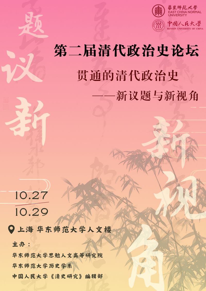 论坛信息 | 第二届清代政治史论坛:贯通的清代政治史——新议题与新视角