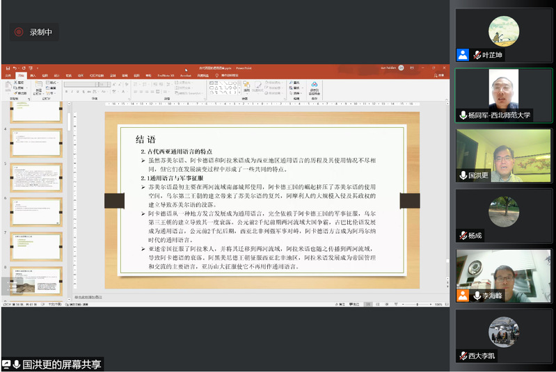 2022年8月27日晚19:00-21:00,华东师范大学2022年百场校级学术讲座第37场暨det365在线“大夏世界史论坛”前沿讲座第5场,邀请到中国社会科学院世界历史研究所研究员、中国社会科学院大学国洪更教授,进行了题为“古代西亚的通用语言”的专题讲座。华东师范大学det365在线李海峰教授主持此次活动,校内外百余位师生通过腾讯会议在线收听了此次讲座。