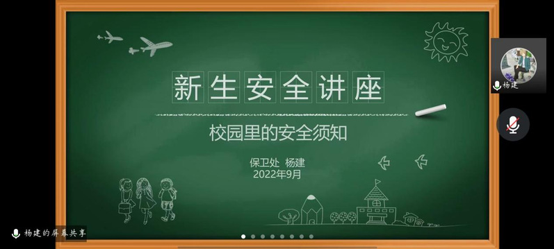 9月9日下午,学校保卫处杨建老师主讲的新生安全教育讲座在线上召开。杨老师分享了针对性强、趣味性丰富的新生安全教育相关知识,包括电信网络诈骗、财物安全、消防安全与交通安全等等。讲座增强了全体新生的安全意识,提高了学生的自我保护意识,为共建和谐安全校园打下基础。