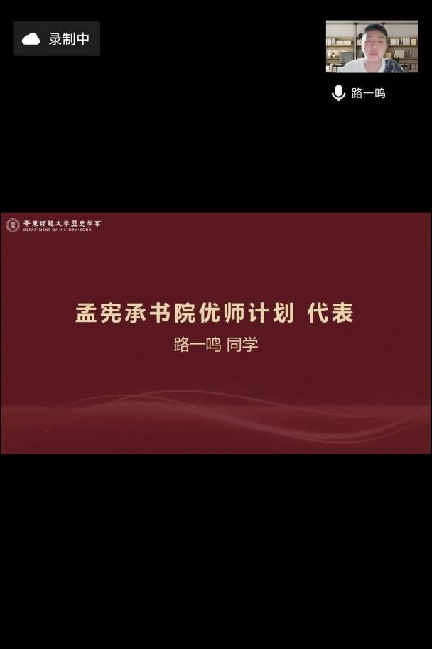 孟宪承书院优师计划代表路一鸣感谢优师计划让自己走到一个更高的平台,有机会反哺家乡,实现人生价值。他认为学习历史能够感受到人类文明的智慧和伟大,他将努力以热情和汗水收获学识与灿烂的人生。