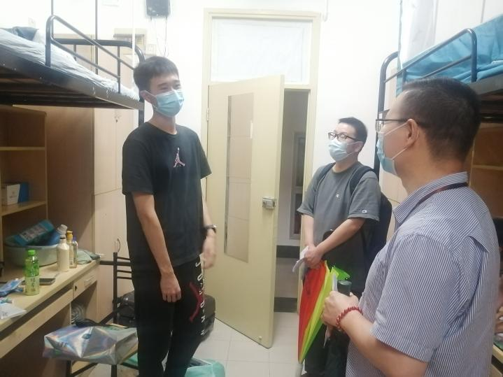 系领导梁志、瞿骏、王应宪和辅导员走访新生宿舍