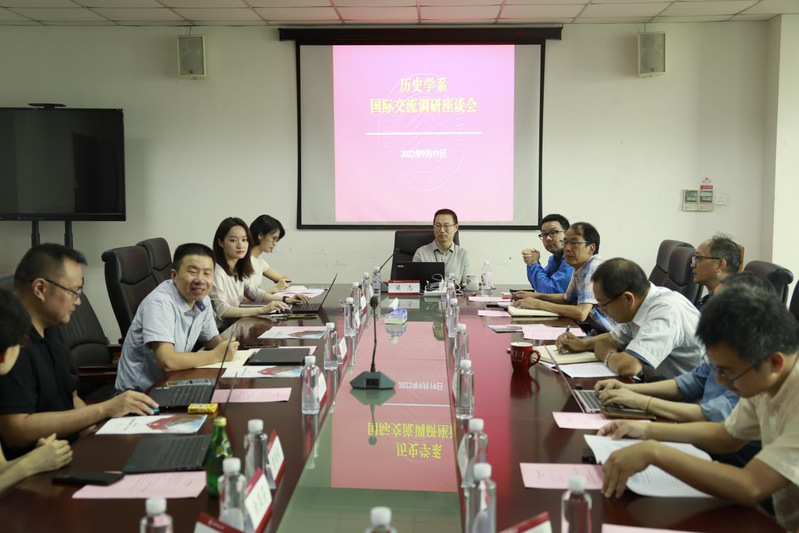 2022年9月19日上午9时,det365在线国际交流调研座谈会在人文学院1306室召开,国际合作与交流处(以下简称“国际处”)调研组成员与det365在线党政领导、相关学科负责人和老师参加会议。
