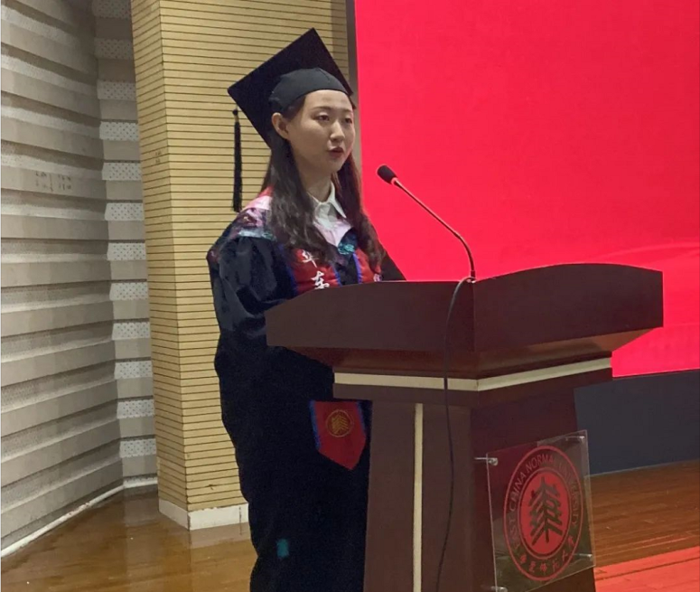博士毕业生代表张凯成分享了他在美丽师大求学的时光,学生是一个变动不居的集合,樱桃河畔的相聚是一个瞬间,学生是永恒的变动;然而,师长们为学术发展的思考、为人才培养的奉献,以及同窗间的真挚友情,则是永恒不变的。所有的变与不变,必将激励着毕业生走出校园之后,保持正直友善、勤奋严谨、平和乐观,大踏步向前,向着更加美好的明天前行。