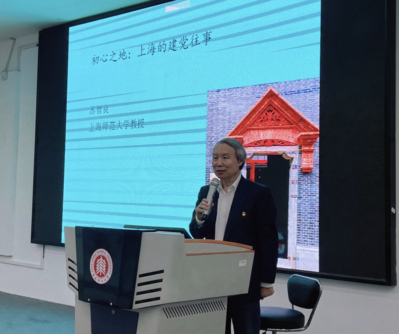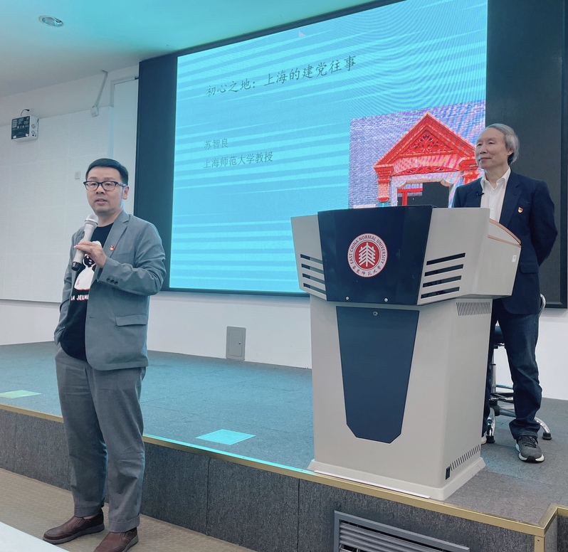 苏智良教授任教育部人文社会科学基地上海师范大学都市文化研究中心主任、中国慰安妇问题研究中心主任,兼任中国城市史研究会副会长,中国现代人物研究委员会主任、上海市初中历史教科书主编等。苏教授研究的领域包括社会史、上海城市史、抗日与中日关系等,已出版著作40余种,发表论文200余篇。苏教授还是上海市委 “四史”“党史”专家宣讲团中的一员,他和研究团队出版了《中共建党与上海社会》、《城市·空间与中共建党》、《人物·思想与中共建党》等数本党史专著。瞿骏教授指出,苏智良教授本次讲座的主题“初心之地:上海的建党往事”,涉及的是中共党史上的核心问题,有重要的学术和社会价值。