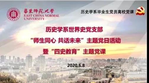 2020年6月8日下午,世界史教工党支部“师生同心 共话未来”主题党日暨2020届毕业生党员离校党课,通过腾讯会议的方式顺利召开。我系党委书记王东教授、世界史教工党支部书记林广教授、宣传委员梁志教授、组织委员王悦老师及支部成员肖琦、谷继坤老师和2020届全体毕业生党员参加了本次活动。