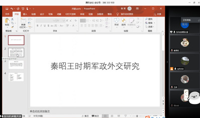 在论文指导部分,余芝淑同学对学位论文选题《西周时期的军事制度》略作介绍。张兆丰同学则着眼于群舒来源、战略地位及与楚吴越文化关系等问题,展示了《东周群舒历史研究》一文。张玲同学基于整体视野探讨秦昭襄王时期的统一策略,包含军事、外交诸方面。