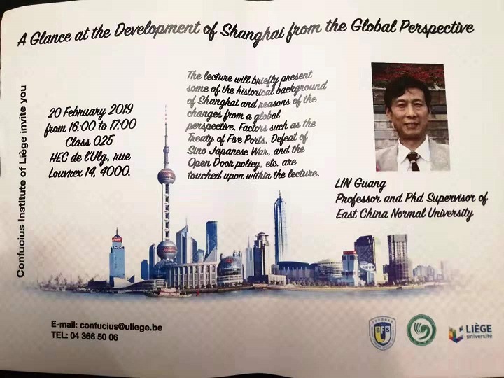 2019年2月20日,华东师范大学博士生导师林广教授,应比利时列日孔子学院邀请,在列日大学HEC商学院举办了主题为《全球视野下的上海发展》的学术讲座,HEC商学院20多名硕士研究士参加了此次讲座。