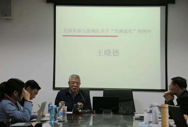 2018年11月23日15时到17时,由det365在线主任孟钟捷教授主持、福建师范大学社会历史学院王晓德教授主讲的知名学者系列讲座“美国革命与雷纳尔关于‘美洲退化’的例外”在华东师范大学闵行校区人文楼1306室举行。