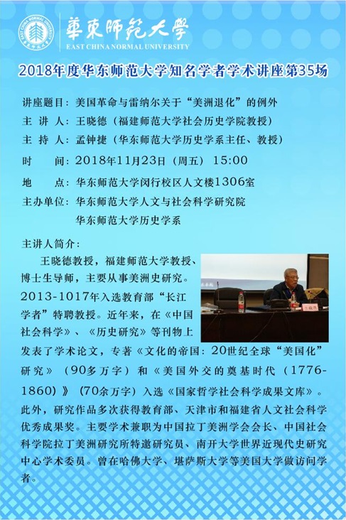 讲座预告:大夏世界史系列讲座第20场,校知名学者学术讲座第35场(王晓德)