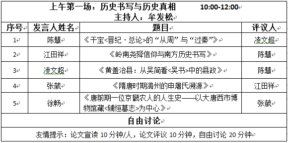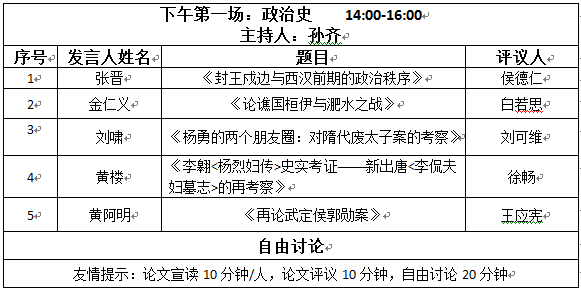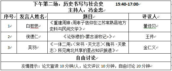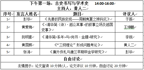 第二会场 地点:人文楼历史系1306室