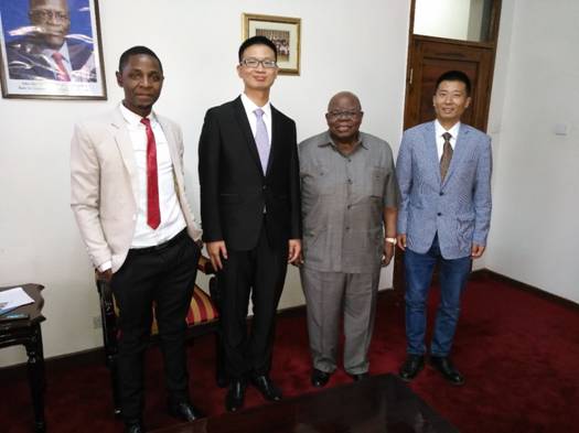 (从右到左依次为:沈喜彭、姆卡帕、曹道涵和助理Sam Kitwima)