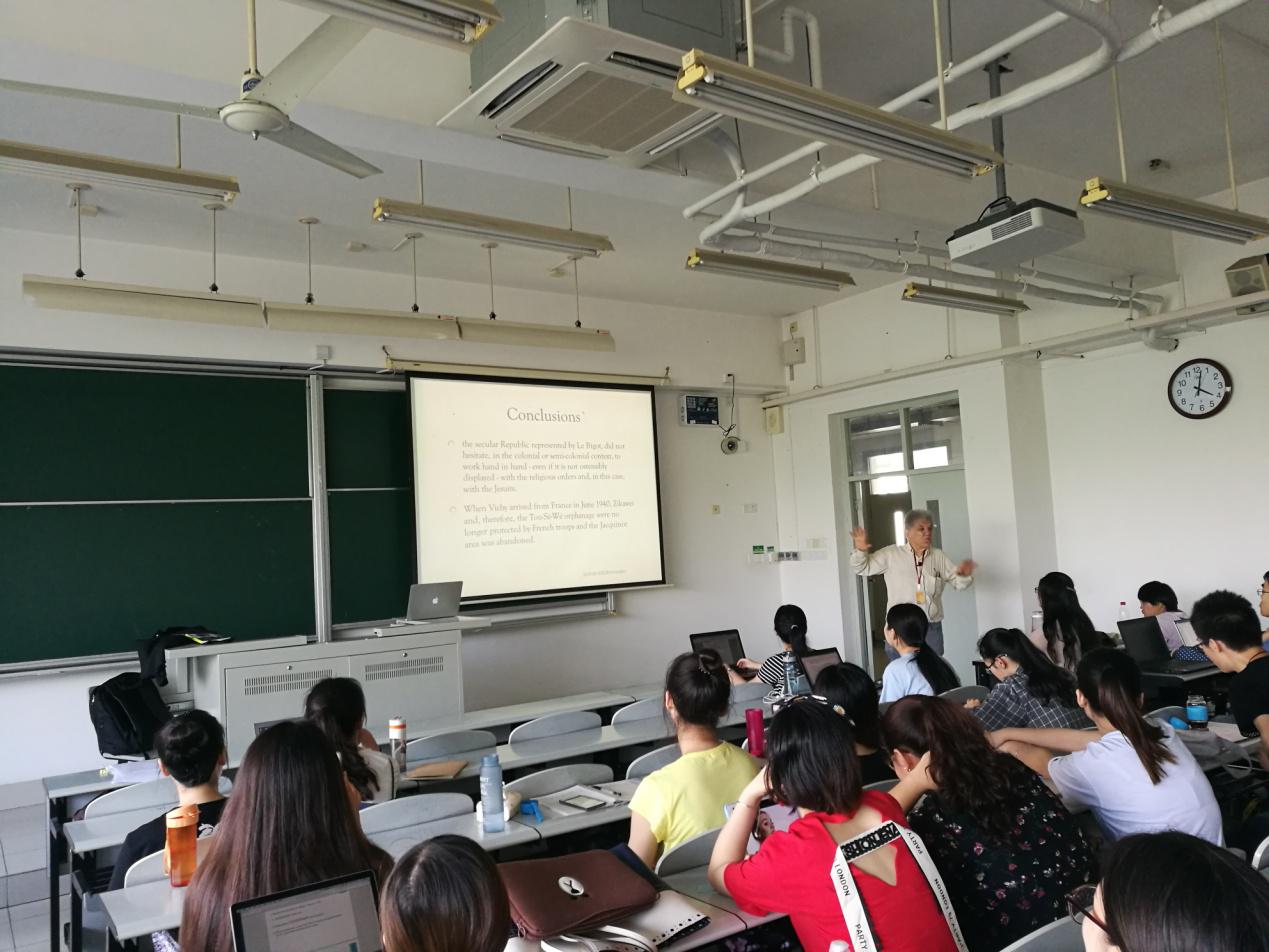 5月16日下午15-17点,法国里昂高师Jean-luc Pinol教授在华东师范大学闵行校区一教219教室为历史系部分本科生及研究生80余人做了一场题为“人道主义者、军人与雕塑家:饶家驹、毕果将军、张充仁,上海与难民危机(1937-1938)”的报告。讲座由历史系肖琦老师主持。