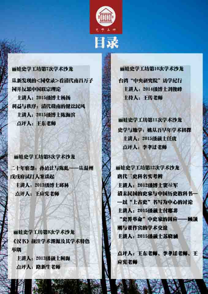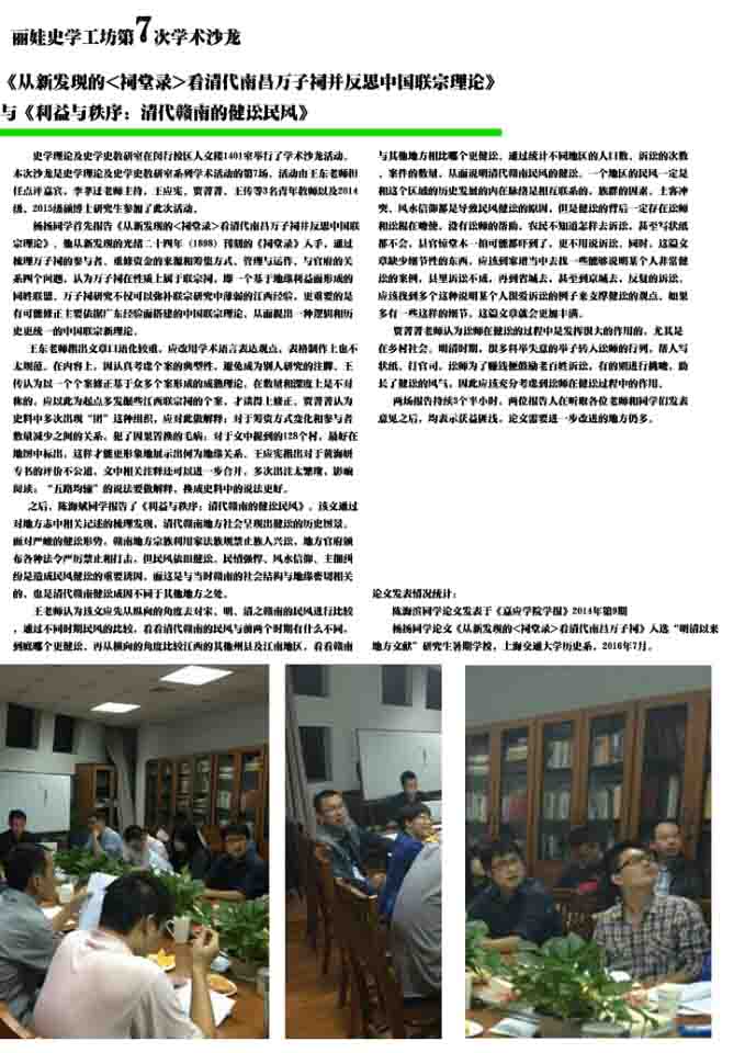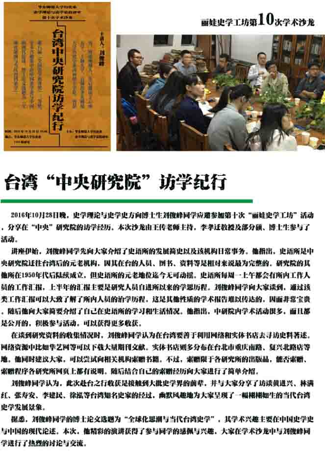史学史教研室2016年度丽娃史学工坊学术沙龙年报