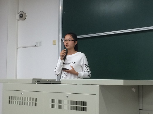李慧慧同学以《非遗路上的青年担当――九个省区多地民俗民乐保护与传承现状大调研》子项目宁海“十里红妆”民俗调研为例,讲述了她参观考察宁波博物馆,“十里红妆”博物馆,泥金彩漆传承基地和朱金木雕传承基地等地的过程与收获。