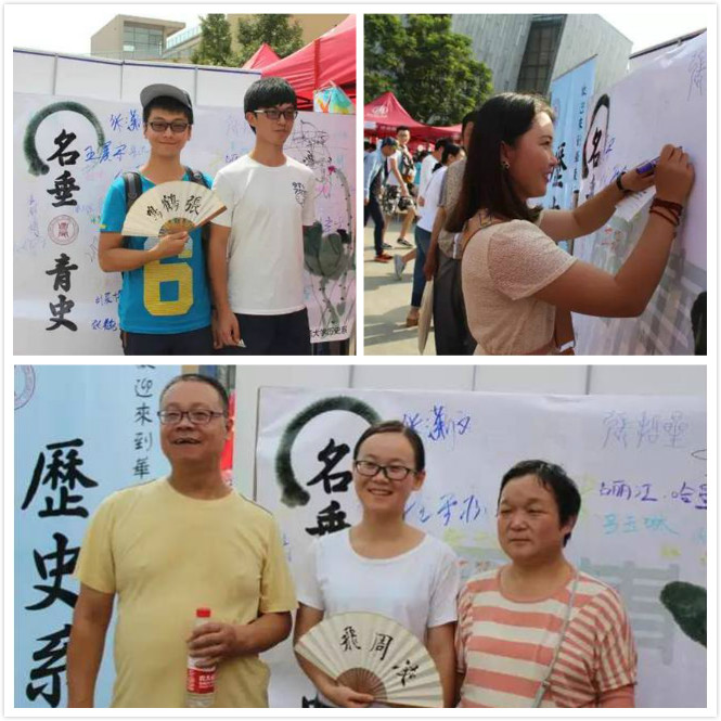不仅如此,新生还在“名垂青史”留言板上,庄重的写下自己的名字,留下大家在师大历史系的第一个足迹。期待今后的日子,我们共同书写;今后的历史,我们共同来见证。爱在师大,从“