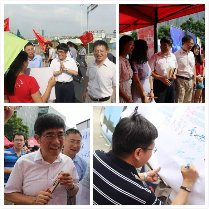 校党委书记童世骏、校长陈群等老师也都来到这里,共同迎接新生到来,并留下他们的签名。