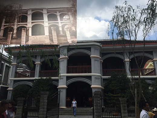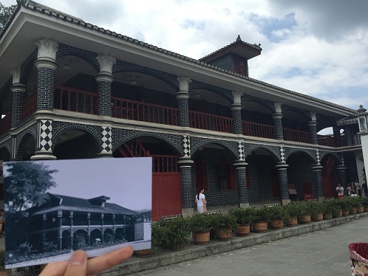 从纪念馆的后门离开会址后,眼前是遵义市著名的杨柳街,街道上散布着星星点点的红色景点。与二十世纪三四十年代的旧照相比,今天这里有着怎样的改变呢。