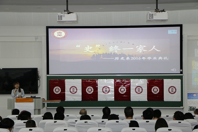 历史系2016届全体毕业生、部分教师、校友代表、家长济济一堂,共同度过了属于历史系毕业季的美好时光。2016届本科毕业生马步青同学担任典礼主持。
