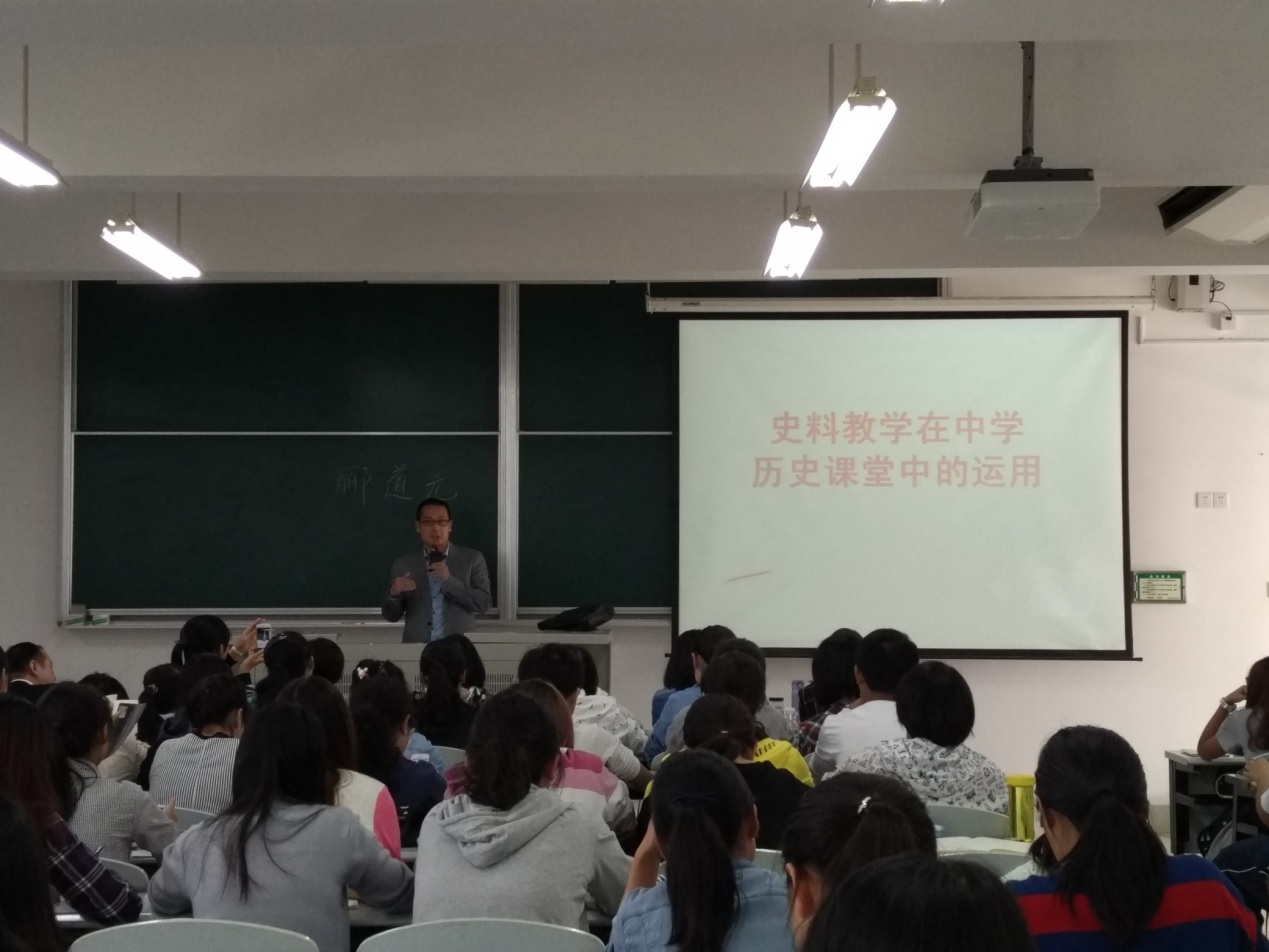 本场讲座张老师分别从史料教学的必要性、史料教学的功能、史料运用基本原则、史料与历史试题的命制、一堂好课的标准五个方面向我们表达了他独特的观点。整个过程中,张老师旁征博引、满怀激情,展现了一位优秀历史教师的风采,同学们也听得如痴如醉,受益匪浅!