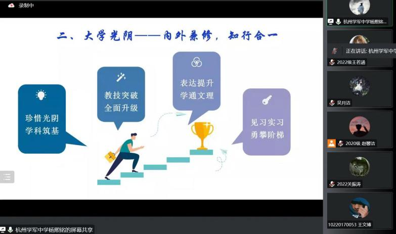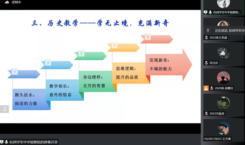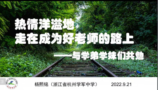 2022年9月21日,历史师范班主题班会邀请到我系2007级首届公费师范生、现任职杭州学军中学的杨熙铭老师进行“热情洋溢地走在成为好老师的路上”主题经验分享。