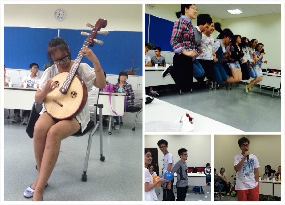接下去的“甩掉便利贴”游戏,黄爱梅老师作为第四组的一员也参与其中。游戏里,只见负责“颤抖”的组员们使出浑身解数,拼命活动身体的每一块肌肉并与队友互相刮蹭,试图摆脱便利贴,欢声笑语充满了整个房间。最后,第二组与第三组分别取胜。第一组中来自香港的丁培�同学为大家献唱了一曲粤语歌,而另一组则派出五位女生合唱一曲《时间煮雨》。