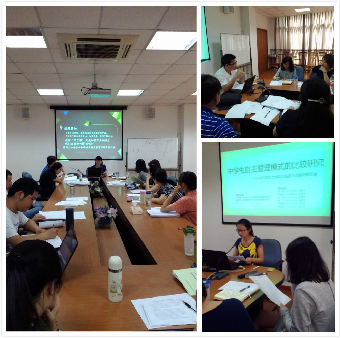 在答辩会中,八个项目的代表分别上台进行陈述,并接受评审老师的提问。分别为:杨磊同学的《从一线教师与学生角度看师范生培养模式》;张美容同学的《国内中学乡土历史教育课教学实践的现状调查及研究――以上海市和贵州安顺为例》;段晓丽同学(由张美容代答辩)的《以南诏国,大理国和明朝土司制度为例的地方民族史教案设计及教学实验》;张峰同学的《关于高中历史教学中“课堂小结”环节的研究》;栾思源同学的《基于课程标准与教材的高中历史教学设计探讨――以上海台北两地的比较为例》;王俊琪同学的《高中阶段学生自主管理模式的比较研究》;丁雨晴同学的《高中历史教学中课标、教材、教学、考纲之关系研究――以上海市为例》;温敏同学的《对中学文理学科知识内容交叉的研究――以人教版为例》。每个项目都从研究方法、研究思路、期望目标、获得结果、预期及建议等多方面进行了展示,充分体现了其成果及特色亮点。