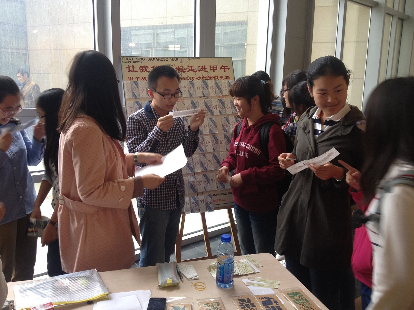 观展之余,“让我们一起走进甲午”知识竞猜也如火如荼的进行中。本次知识竞猜同样由历史系本科生负责完成,同学们踊跃参与了出题、制作卡片、现场布置等各项工作。