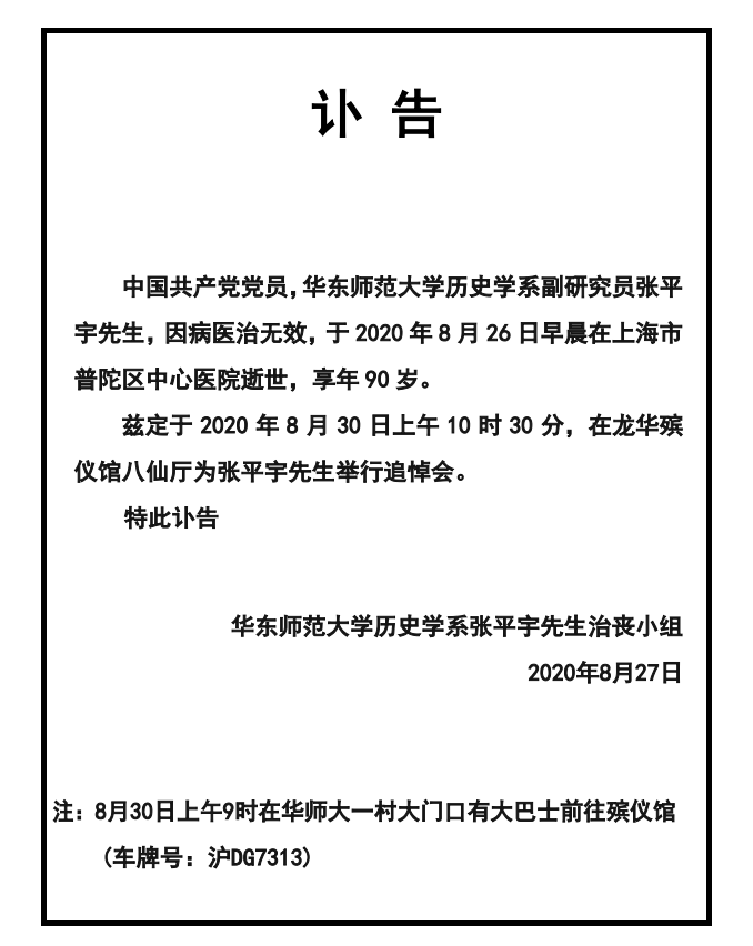 沉痛悼念张平宇先生