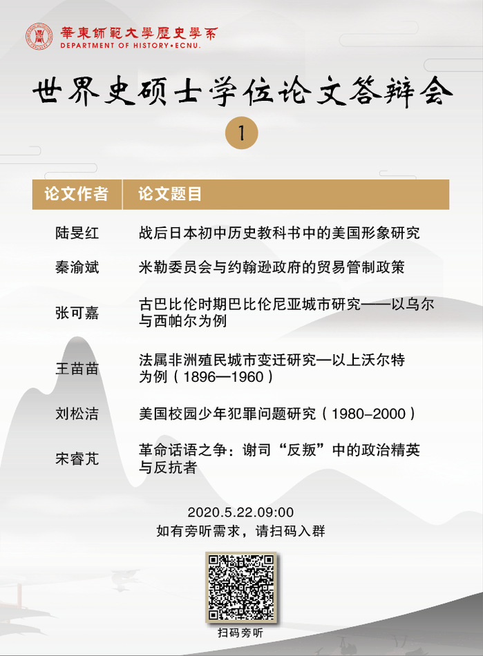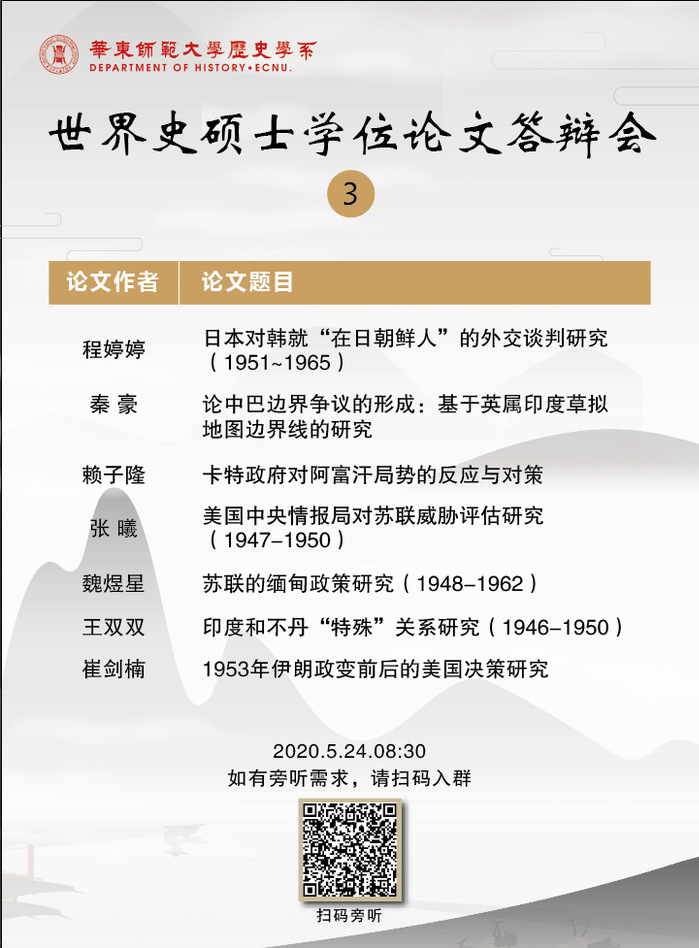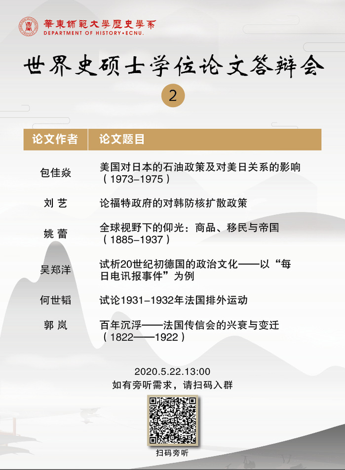 世界史硕士学位论文答辩会公告