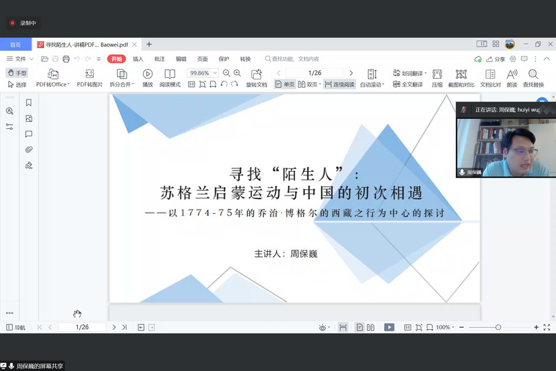 复旦大学李宏图教授和华东师范大学周保巍老师则着眼旅行史研究的具体实践,分别就《论自由》文本在中国的翻译以及乔治·博格尔在西藏的旅行为中心,分享了其研究成果。四位学者精彩的报告为全体与会人员奉上了一场学术盛宴,引发了热烈的讨论。