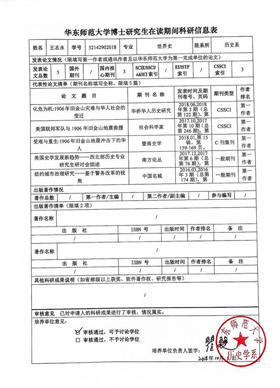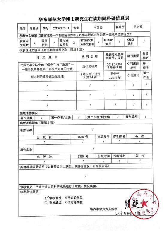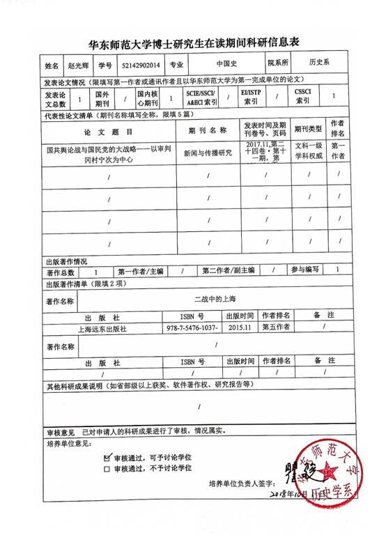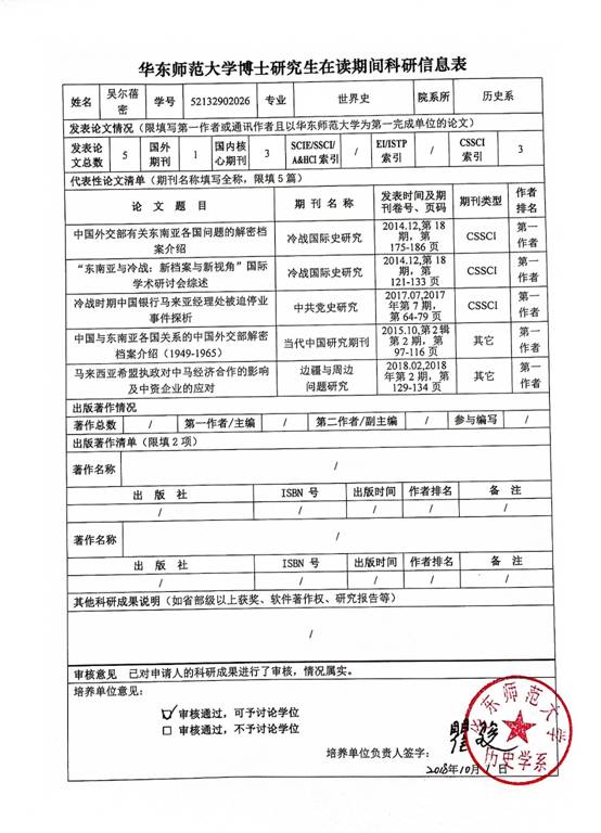 根据华东师范大学研究生院关于博士研究生科研成果发表要求的相关规定,det365在线对2019年春季拟毕业博士生的科研情况进行了审核,现将复核结果予以公示。公示期自2018年12月3日至12月7日(五个工作日),在此期间如有异议,请与det365在线研究生工作办公室联系。 联系人:史老师 联系电话:54342642