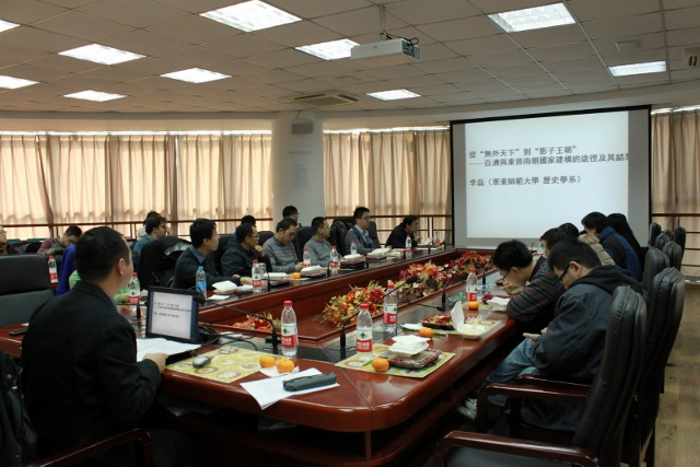 2013年12月13日星期五中午,思勉午餐沙龙暨历史系“空间・权力・书写”系列论坛第一讲《从“无外天下”到“影子王朝”――百济与东晋南朝国家建构的途径及其结果》在闵行校区人文楼5303室如期举行。讲座由李磊副教授主讲,孟钟捷副教授主持,上海交通大学历史系刘啸博士点评。《华东师范大学学报》(哲社版)编辑孔令琴老师和历史系、思勉人文高等研究院、哲学系、政治系、社科处、财务处20多位老师以及数十位研究生、本科生参加了这次讲座。论坛得到了思勉人文高等研究院的大力支持。