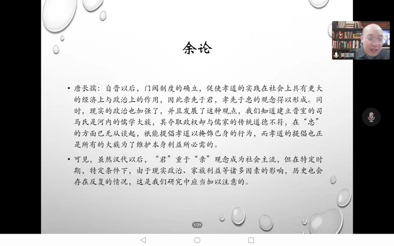 2022年10月13日晚上18:00,华东师范大学“百场校级学术讲座”第57场、det365在线“大夏中国史论坛前沿讲座”第3场,邀请到北京师范大学历史学院黄国辉教授,进行了题为“早期儒家君亲观念的演进与‘三纲理论’的形成”讲座。本场讲座的主持人为华东师范大学det365在线王进锋教授,数百人聆听了讲座。