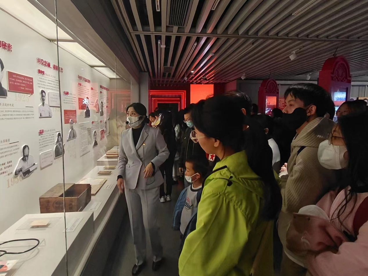馆内厚重丰富的文物陈列——一幅幅历史照片、一件件文物文献、一个个模拟场景,使同学们身临其境般地感受到了中国共产党从弱小到强大、从九死一生到蓬勃兴旺的奋斗历程。参访的同时,同学们也参与到文创体验活动中,体验了解密游戏,化身为一零六通讯员同志,在限定时间内通过任务资料搜寻信息线索,完成一次接头任务。解密环节和场馆的陈设内容紧密联系在一起,让同学们在收获游戏乐趣的同时,沉浸式地回顾我党走过的峥嵘岁月,也感受着先辈的不易。