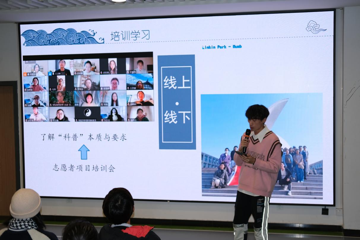 为了让新一期的项目成员更深入地了解项目宗旨、更好地融入并创新性开展项目,毕冉、曾凌鑫和王怡丹三位同学分享了她们在志愿服务过程中的所思所想所感所得,并从课程设计、实地宣讲、总结优化等方面与新成员们交流经验与想法。