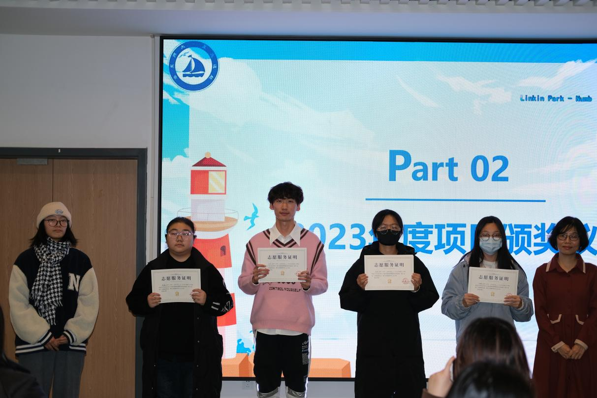 在颁奖环节中,蔡慧贤老师为项目第一期成员代表颁发志愿时长证明,以示鼓励。成员们结合专业知识自主制作航海系列特色课程、设计宣讲情境及互动环节,通过科普宣讲输送到本市或外省市的社区或中小学校,增强自身综合素养,提高创新实践能力。全体成员以实际行动服务社会,共进行了近400小时的志愿服务。