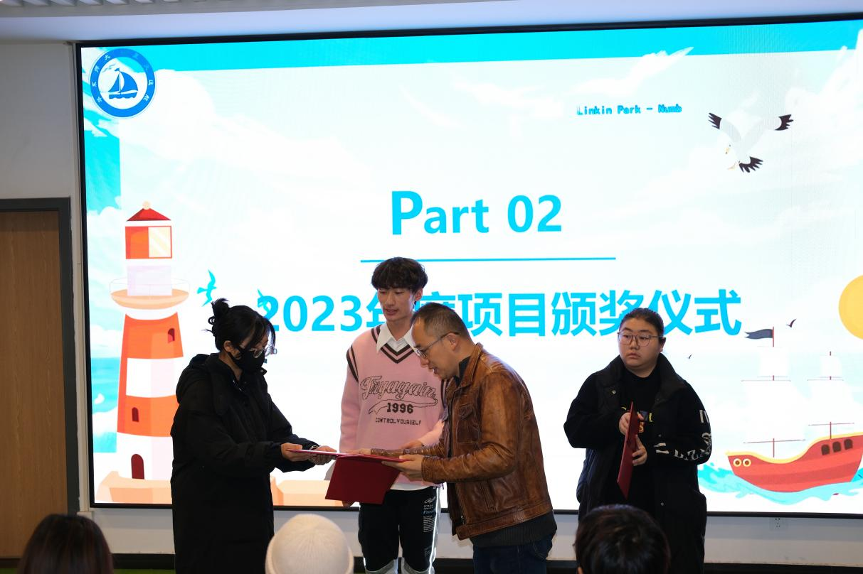 在项目实践过程中,刘江韬、任丽娟、曾凌鑫、李雪萌四位同学积极参与课程设计与宣讲活动,在活动中表现出热情和奉献精神,为小组任务及项目整体发展的推进做出重要贡献,被评选为“优秀志愿者”,由朱明教授宣布获奖名单,并为同学们颁奖。