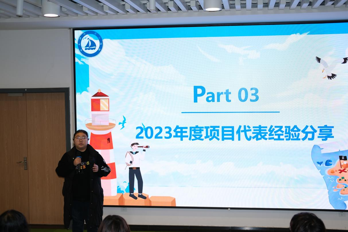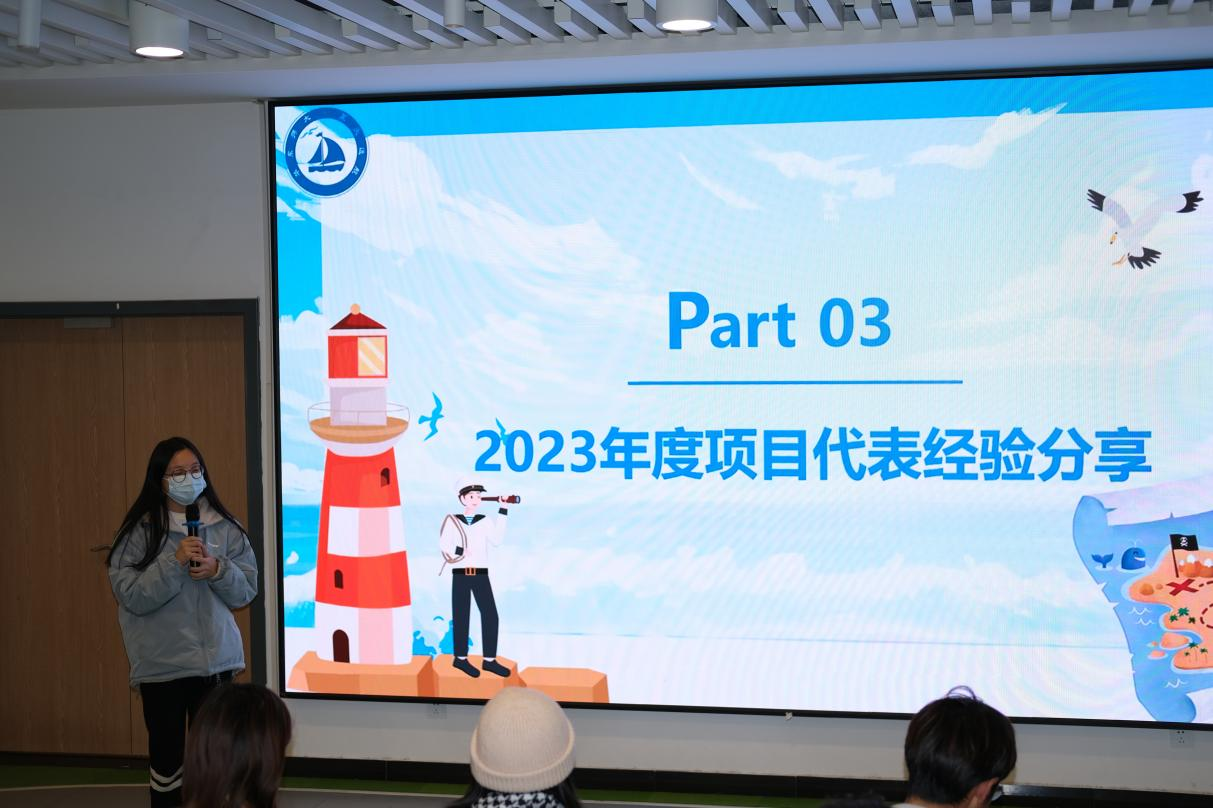 活动伊始,刘江韬简要汇报了2023年度项目的成长足迹。成员们在上海、吉林、湖北、广西、江苏等地开展文化科普活动,深入学校和社区,为500余位中小学生讲解航海知识,开拓文化视野。科普宣讲受到热烈欢迎,收获了学校老师与社区工作人员的一致好评。来自上海市交通团工委和“中海博”的感谢信和《中国文物报》刊登的项目成果更展现了成员们回馈社会、服务社会的实践努力。