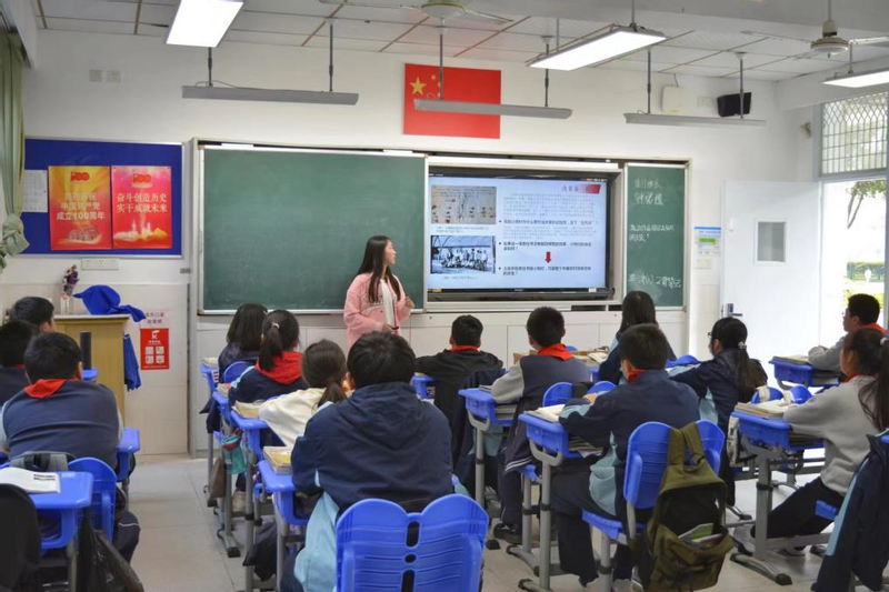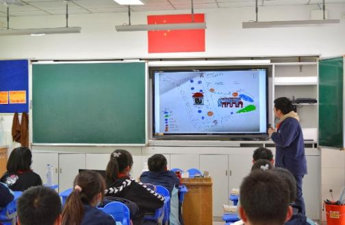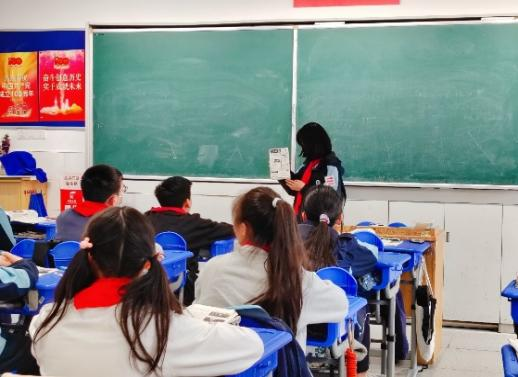 于是,趁着阳光明媚天,项目组中历史专业的冯琪和来自思政专业的王钧瑶两位同学作为代表,在3月9日下午来到高境一中初一一班和二班开展了两节微课教学,观看了初中小同学的成果汇报,并与他们进行了交流。