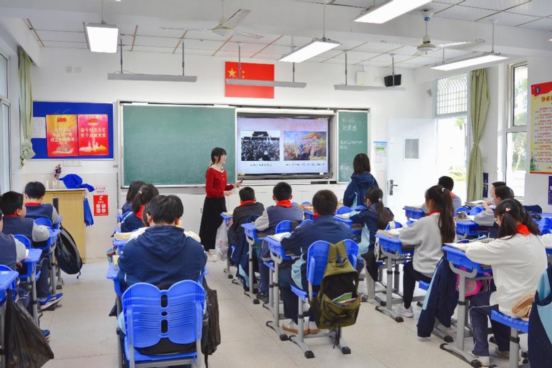 冯琪同学也非常珍惜此次实践机会,她说道:“此次课堂实践是我第一次以未来教师的身份登上讲台,不同于教案设计时以课堂教师、教材为中心,固定好版块环节的设计策略。线下授课师生互动性加强,教师需要针对学生的反应不断调整教学思路,这对于我来说是较大的挑战。另外钱老师的指导让我意识到历史教学的量力性原则和积极性原则。此次授课对象为初一学生,所学内容尚未接触到改革开放时期,这与最初设想不同,意味着我们要根据学生知识领域调整教学方式,利用学生已知知识延伸出新知识,要从小切口入手,注重学生知识具体化,避免泛化学习。总之,此次授课暴露了我许多教学缺陷,今后将更注重学生兴趣性、创造性、思维训练方面培养。”